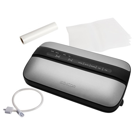 A csomagolás tartalma: vákuumos fóliahegesztő, elszívó cső, 5 db 20 × 30 cm-es zacskó, 20 × 200 cm-es fóliatömlő