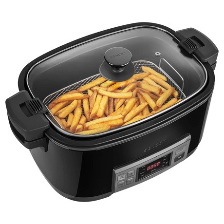 A Sencor SPR5508BK egy elektromos lassan főző készülék. A lassú főzés egy modern főzési technológia, amely megőrzi az alapanyagok ízét és illatát, és akár bármilyen zsiradék hozzáadása nélkül készítheti el kedvenc ételeit. Ezzel a multifunkciós készülékkel süthet akár olajban, párolhat vagy gőzben készítheti el az ételeket. A digitális LED kijelzőnek és a melegen tartó funkciónak köszönhetően a főzés egyszerűbb és kényelmesebb lesz, mint valaha.