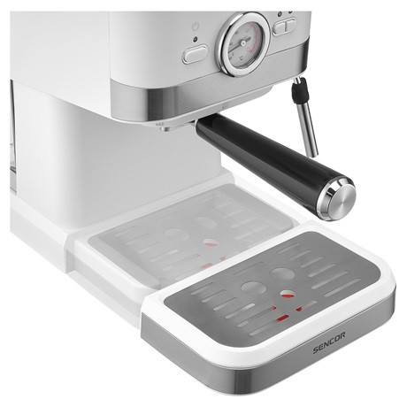 A Sencor SES 1720WH karos presszó kávéfőző géppel könnyedén készítheted el a kedvenc eszpresszódat. A 20 bar nyomás garantálja az ízletes és intenzív kávéélményt. Az elforgatható rozsdamentes gőzfúvóka lehetővé teszi a krémes cappuccino és latte készítését. Emellett a készülék forró víz funkciójával akár americano vagy tea is elkészíthető. A kivehető 1,5 literes víztartály vízmennyiség jelzővel rendelkezik, így mindig pontosan tudod, hogy mikor kell feltölteni. A digitális vezérlés a pontosabb működést hivatott biztosítani.