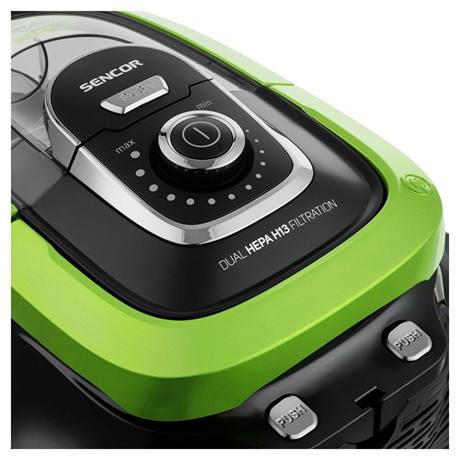 A Sencor SVC 1038GR porzsák nélküli praktikus és megbízható kialakítású porszívó. Cyclone Technology rendszerrel lett felszerelve, amely tökéletesen elválasztja a port a levegőtől. A felhasználóbarát tervezésnek köszönhetően a portartály és HEPA szűrő mosható, a szívóteljesítmény elektronikusan vezérelhető. A hatékony 750 W teljesítményű motor biztonsága érdekében egy hőbiztosítékot építettek be a motor túlmelegedésének megakadályozására. A gumírozott kerekek megkönnyítik a porszívó mozgatását a padlón.