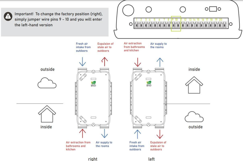 "HRV" változat: Kereszt-ellenáramú hőcserélővel, automata 100%-os bypass funkcióval (hőcsere nélküli szellőztetés lehetősége)  biztosítja a legmagasabb energiahatékonyságú szellőztetést a páratartalom megfelelő szinten tartása mellett.