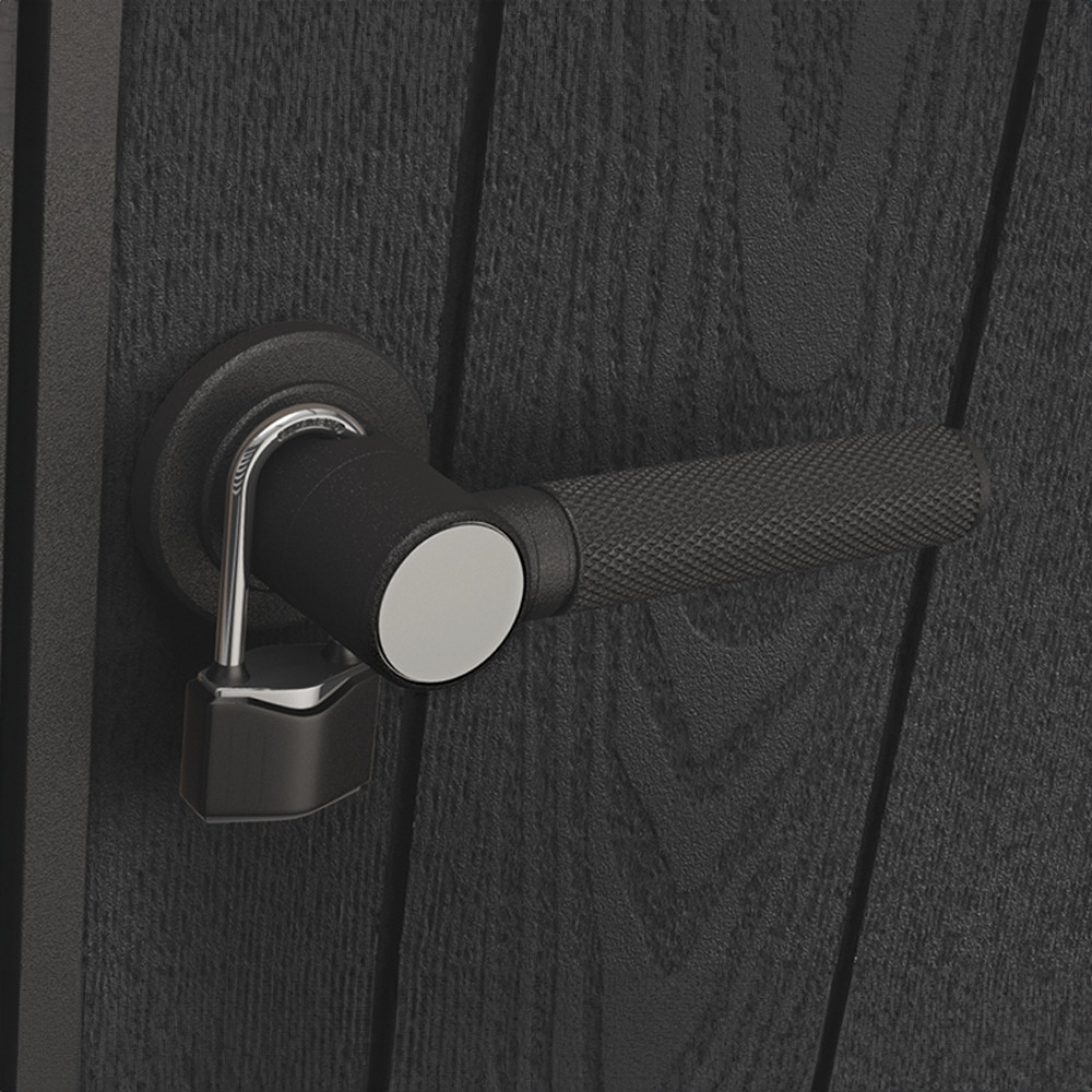 • Praktikus tárolási megoldások: Ez a kerti ház tökéletes választás lehet mindazok számára, akik helyet keresnek barkácsszerszámok, kerti eszközök, sportfelszerelések vagy akár tűzifa tárolására. A dupla ajtók kényelmes hozzáférést biztosítanak a belső térhez, a szellőzőrendszer pedig gondoskodik a megfelelő levegőáramlásról, hogy a tárolt eszközök ne legyenek nedvesek vagy dohosak. Az ajtózárnak köszönhetően a kerti ház biztonságosan lezárható, így értékeid mindig védettek maradnak.