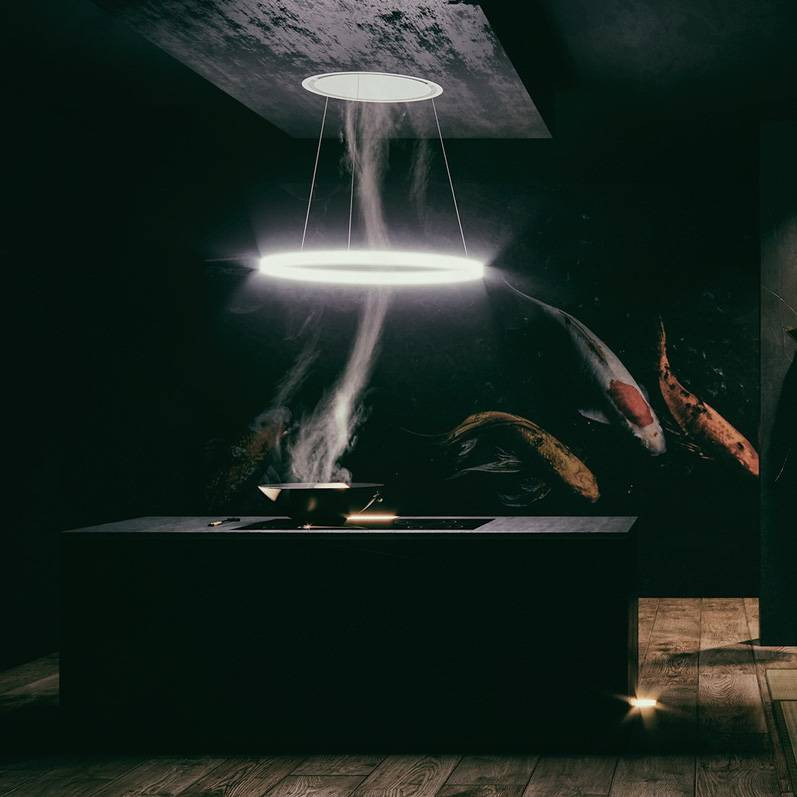 A központi dizájnelem az elegáns HALO fénygyűrű, amely nemcsak látványos, hanem rendkívül funkcionális is. Az 1×23 W-os LED szalag és az opál diffúzor egyenletes, lágy fényt biztosít, amely kellemesen megvilágítja a főzőfelületet anélkül, hogy vakítana. A megfelelő fény nemcsak a kényelmet növeli, hanem csökkenti a szem fáradását is. Ez a megoldás hosszú távon is hozzájárul a konyhai komfort érzetéhez és az otthon meghitt hangulatához.