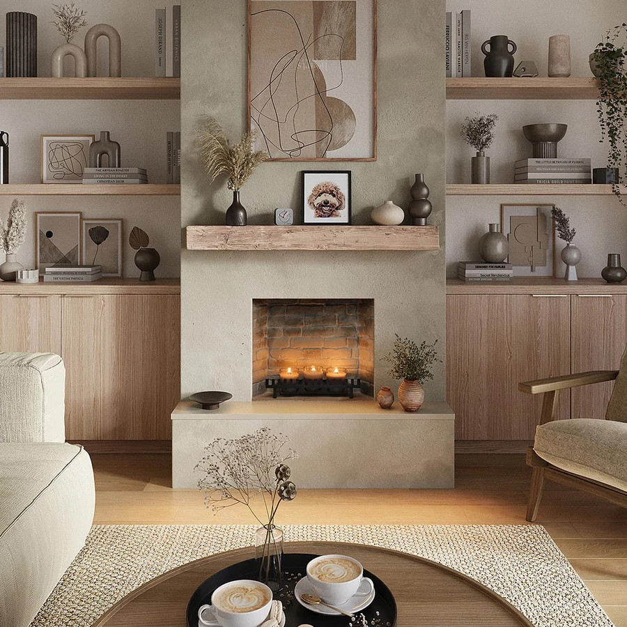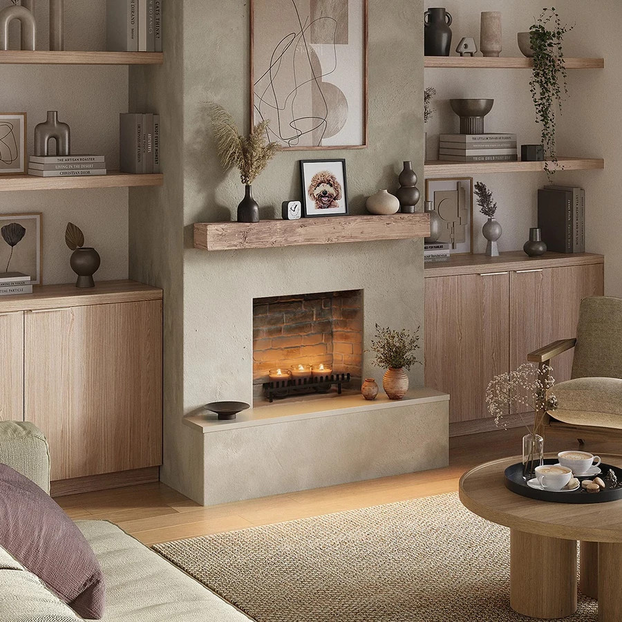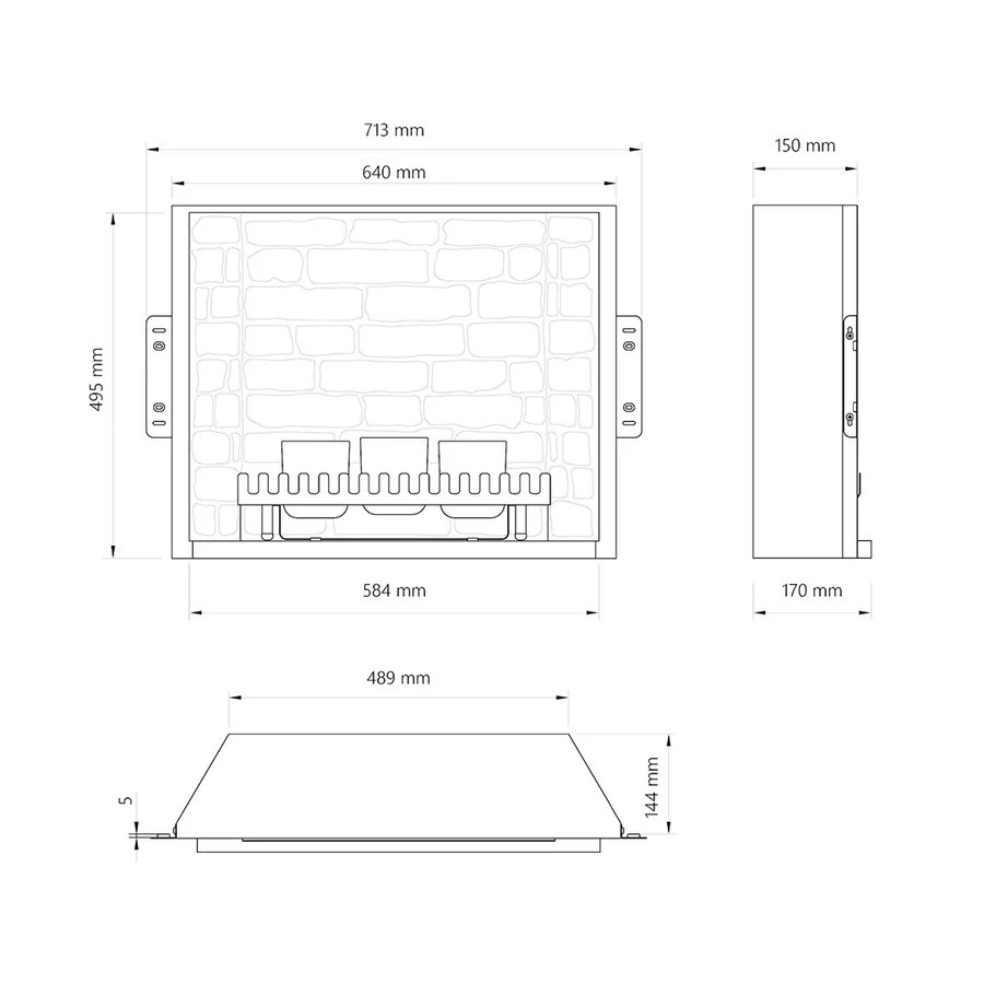 A kandalló burkolata kézzel készül Lightstone® anyagból, amely megjelenésében a cementre vagy a téglára emlékeztet. A háromdimenziós tégla textúra valósághű tapintást és látványt nyújt. Az olyan apró részletek, mint a koromnyomok vagy természetes hibák, kézzel festettek, így minden darab egyedi karakterrel bír.