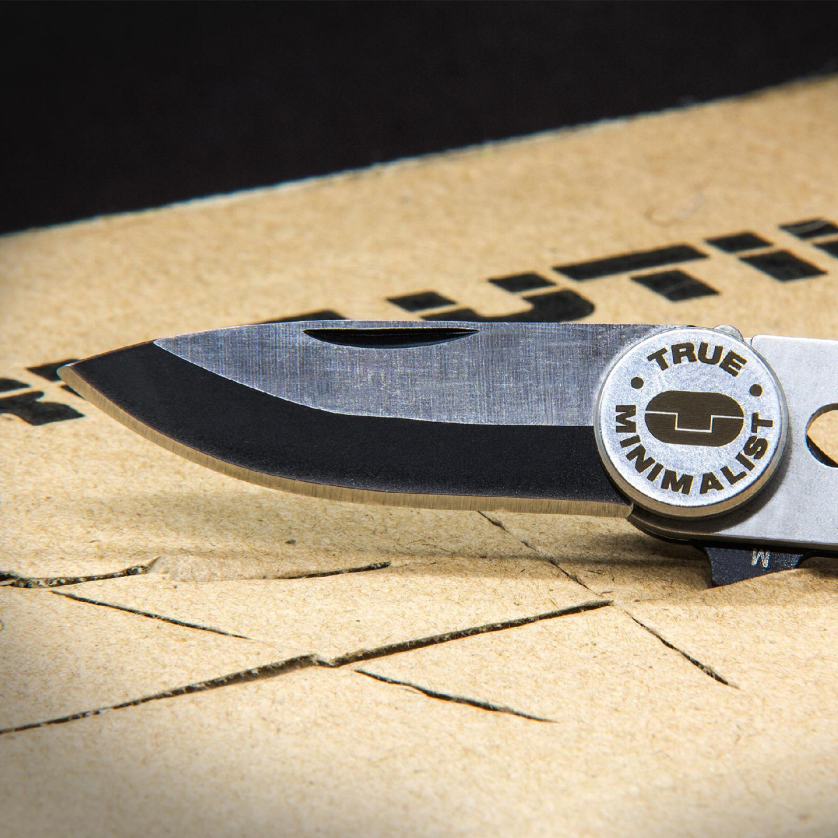 True Utility Minimalist, TU208K, multifunkcionális szerszám, designer kés, fekete titánbevonat, rozsdamentes acél penge