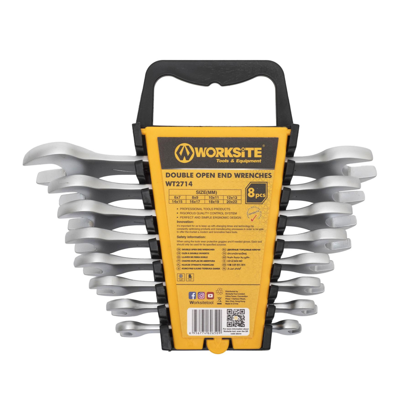 WORKSITE WT2714 mindkét végén nyitott villáskulcs készlet, 8db, Cr-V acél, praktikus tároló