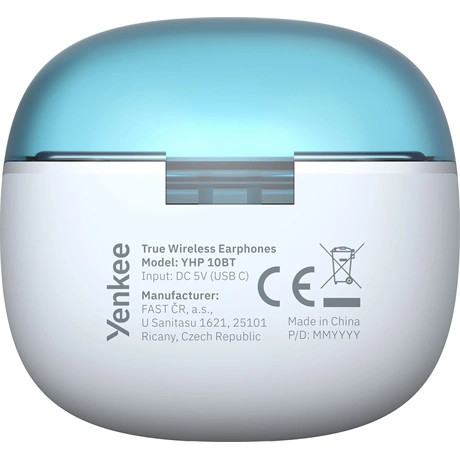 A fehér tok kék nyitással és fekete kiegészítőkkel modern és kifinomult megjelenést kölcsönöz. A tok színes világítása és a fülhallgatók kék kör alakú megvilágítása futurisztikus jelleget ad, ami kihangsúlyozza stílusos kialakításukat és egyedi karaktert ad nekik.