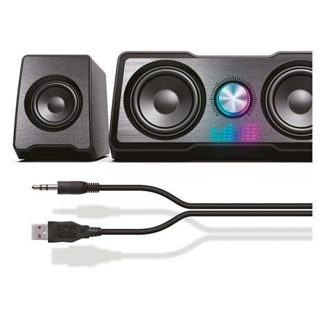 A legnagyobb előnyöm azonban az egyszerű vezérlőelemek, amelyeket még egy gyerek is képes kezelni. A minőségi hangzást egy 3,5 mm-es audiocsatlakozó biztosítja, amelyet egyszerűen csatlakoztathatsz a számítógép aljzatához. Ugyanez a helyzet a hangerőszabályzóval is, amelyet a mélysugárzó elején található nagy gombon keresztül vezérelhetsz. Az áramellátásról ezután egy USB-kábel gondoskodik, amely összeköti a hangszórókat és a számítógépet. Szóval csatlakozz és élvezd a zenét!