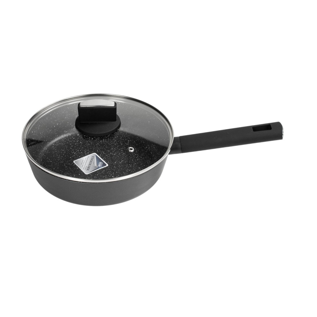A puha tapintású nyél stabil, biztonságos fogást biztosít, még hosszabb főzési folyamat során is. Az indukciós aljgyors és egyenletes hőelosztást garantál, míg a hőálló külső bevonat növeli a serpenyő élettartamát. A mellékelt üvegfedél lehetővé teszi az ételkészítés folyamatos ellenőrzését anélkül, hogy a hő elszökne.