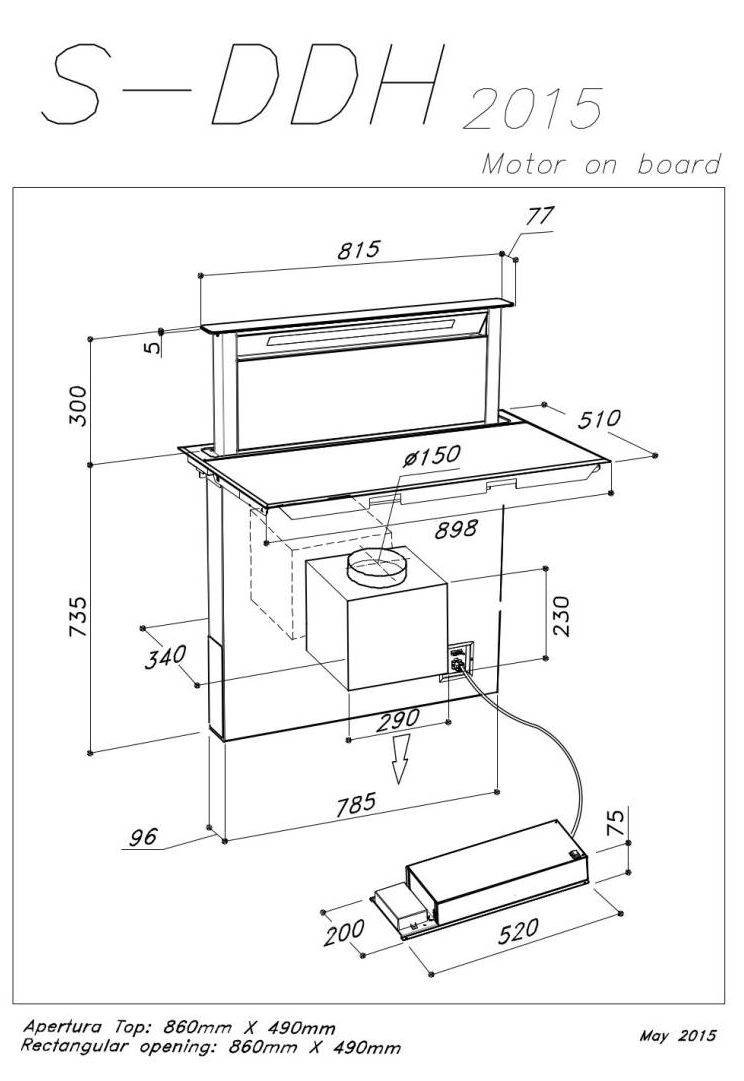 motor nélküli változat, lehet belső és küldő motorral is rendelni, 150 mm-es kivezetés, touch control érintővezérlés