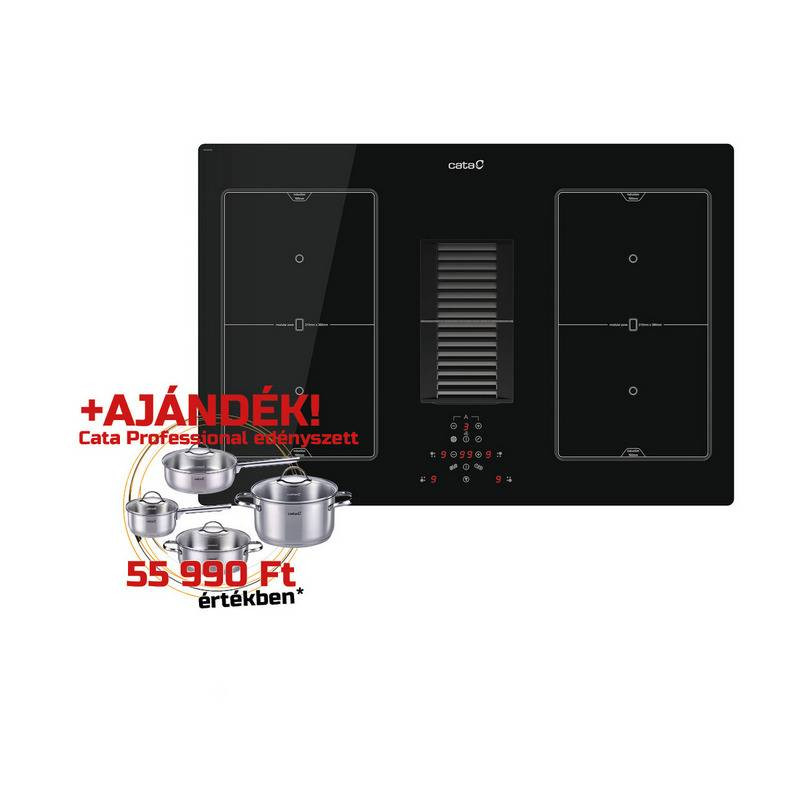 CATA - Beépíthető főzőlap kerámia indukciós, beépített elszívóval AS-750 + CATA PROFESSIONAL edényszett