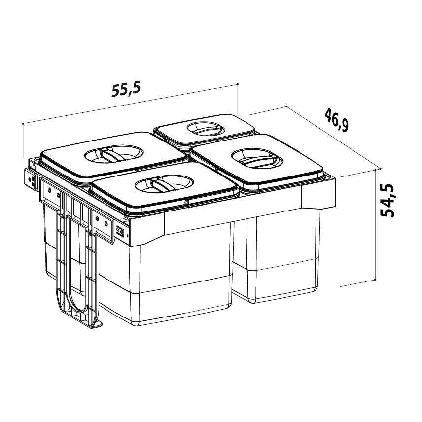 EKOTECH - Beépíthető hulladékgyűjtő FREE JAZZ 60 - 3x26 liter+1x7 liter