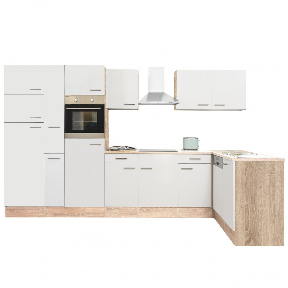 Yorki 370 sarok konyhablokk sonoma tölgy korpusz,selyemfényű fehér fronttal. A tökéletes konyha megteremtője!