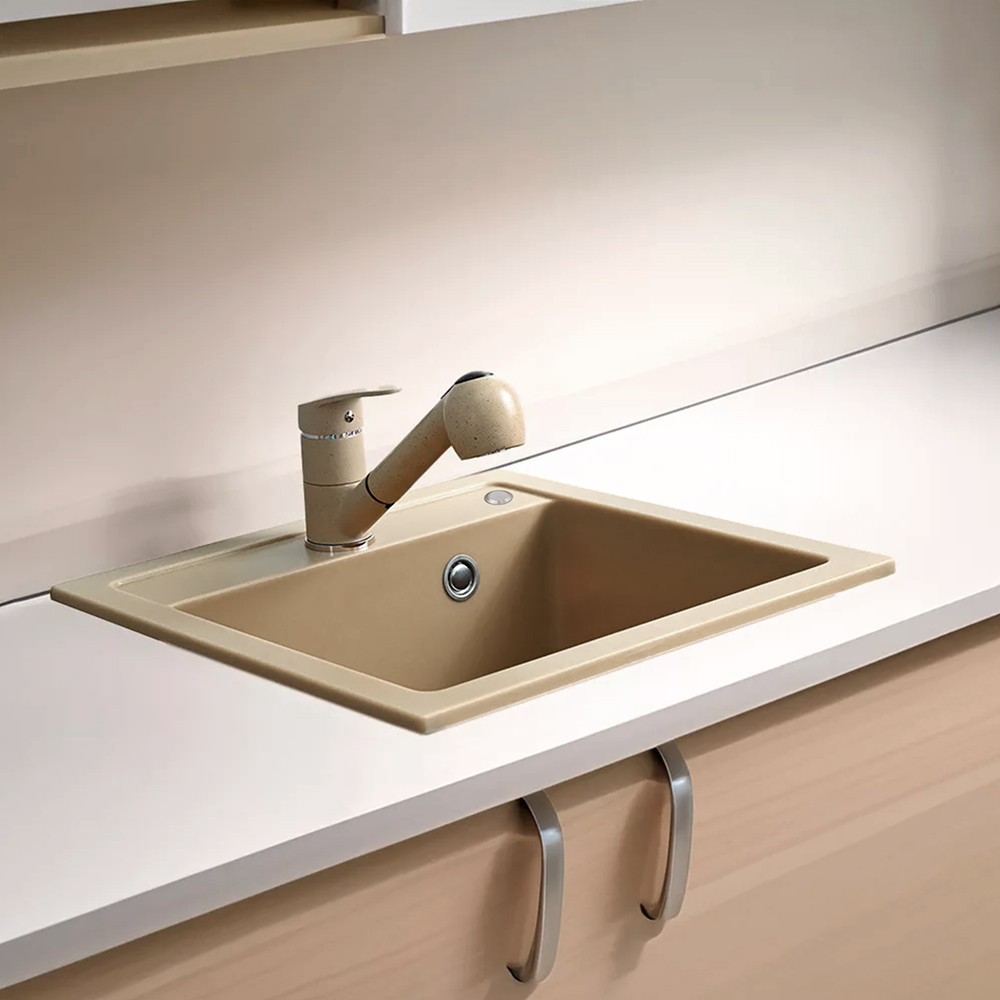 Nia szögletes egy medencés gránit mosogató szifonnal bézs