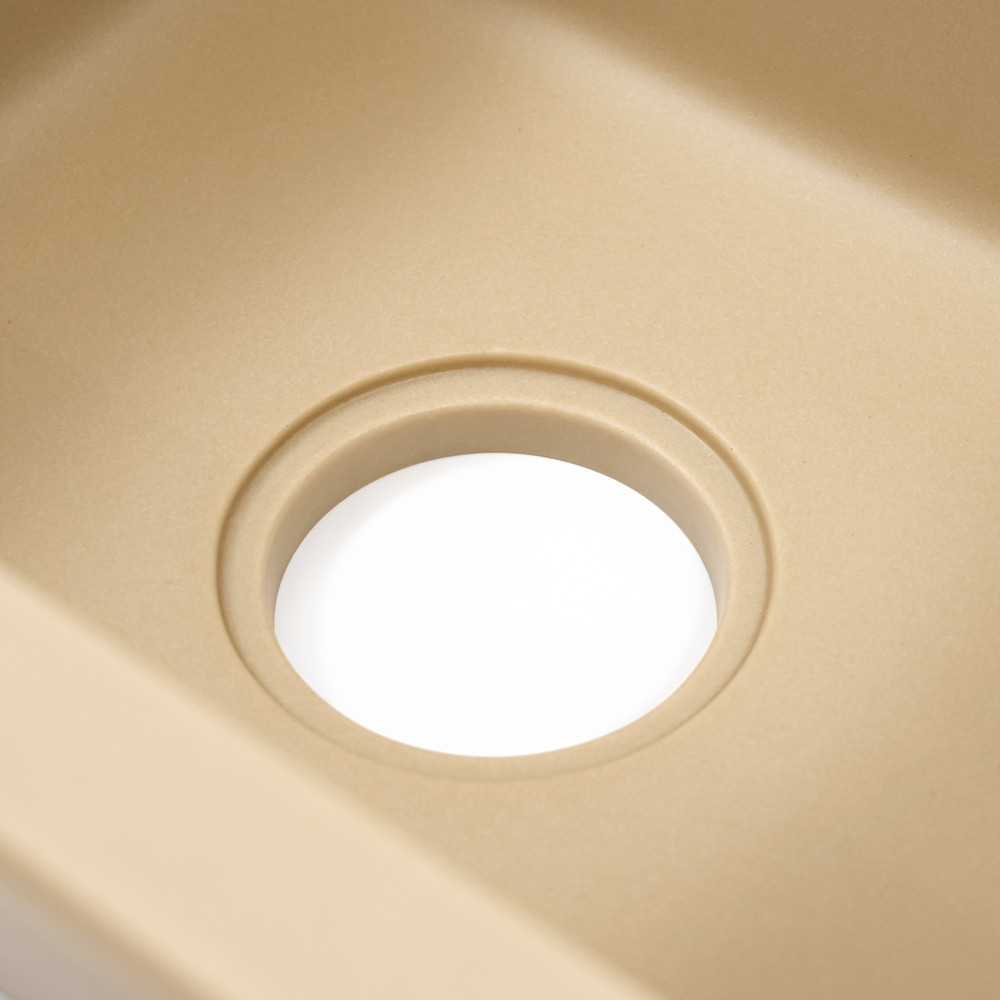 A Nia szögletes Bézs gránit mosogató egyaránt kielégíti az esztétikai és a funkcionalitási igényeket. A süllyesztett beszerelési módja modern megjelenést kölcsönöz konyhájának, míg a kompakt méretei és a prémium minőségű anyagok hosszú élettartamot biztosítanak.